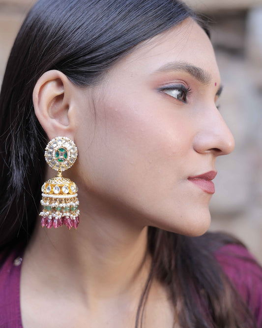 Multi Color Gold Plated Jadau Kundan Jhumka Earrings - ER110MC