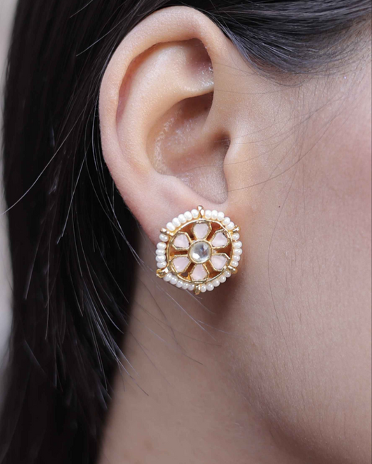 Light Pink Color Gold Plated Jadau Kundan Jhumka Earrings - ER116LP
