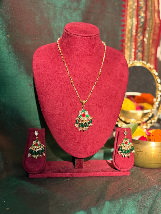 Green Color Gold Plated Jadau Kundan Nosering- NTH101GR