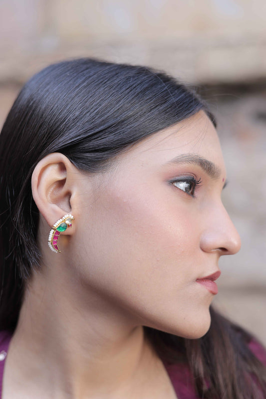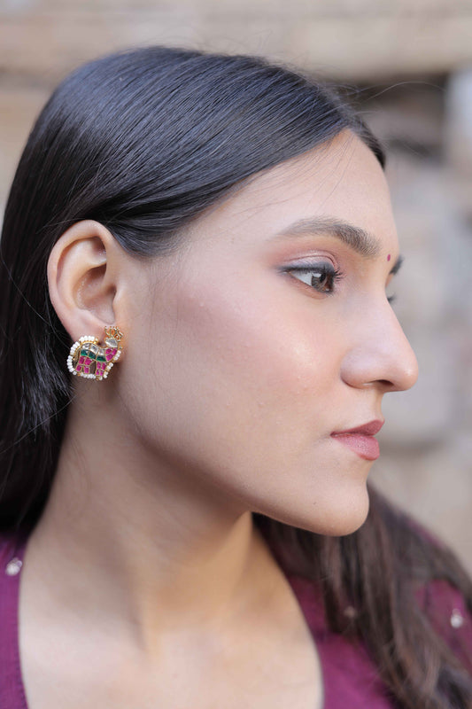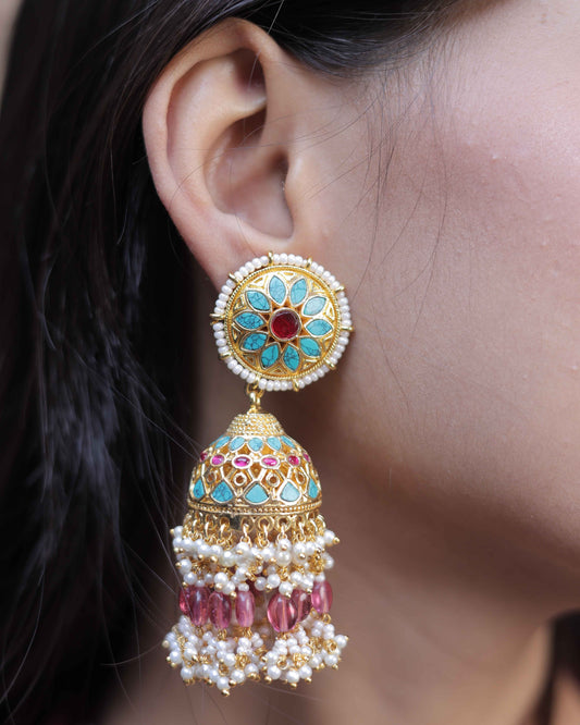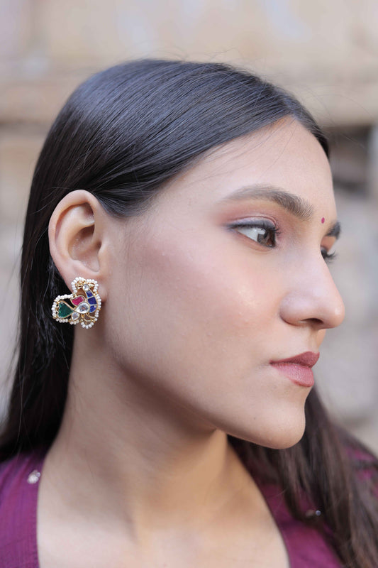 MultiColor Gold Plated Jadau Kundan Jhumka Earrings - ER107MC