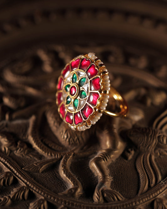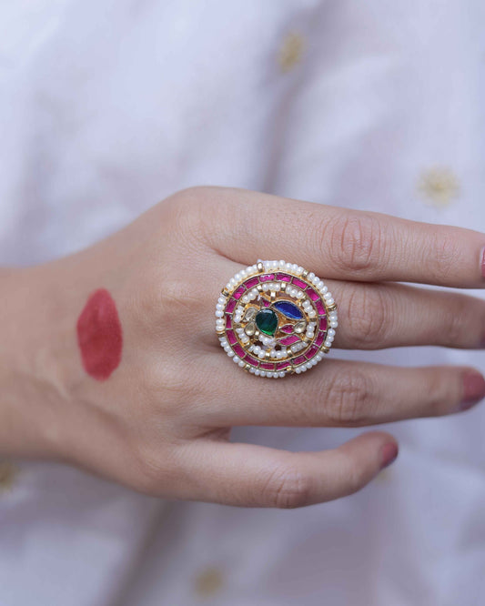 Multi Color Gold Plated Jadau Kundan Ring- R113MC