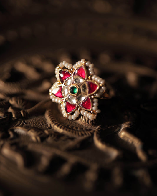 Multi Color Gold Plated Jadau Kundan Ring - R121MC