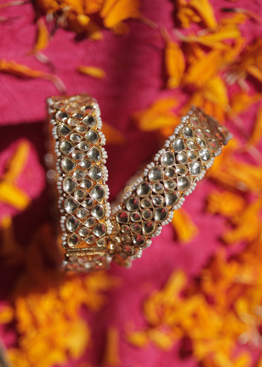 White Color Gold Plated Jadau Kundan Bangles- BAN111W