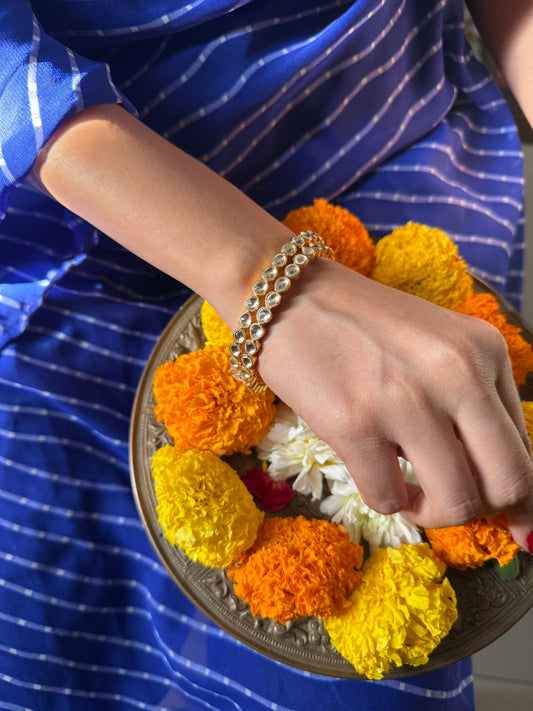 White Color Gold Plated Jadau Kundan Bangles- BAN106W