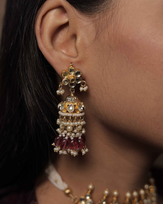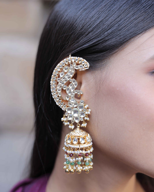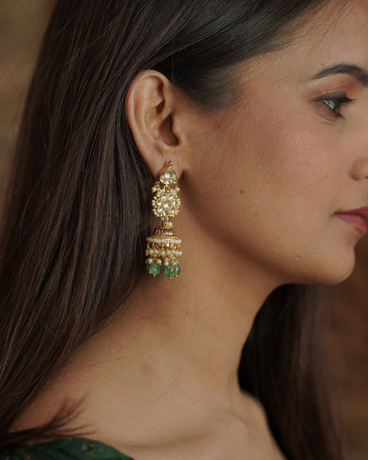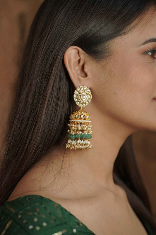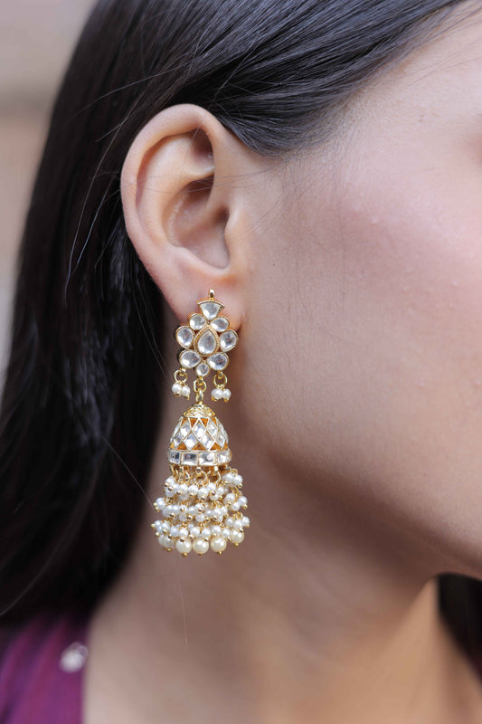 White Color Gold Plated Jadau Kundan Jhumka Earrings - ER113W