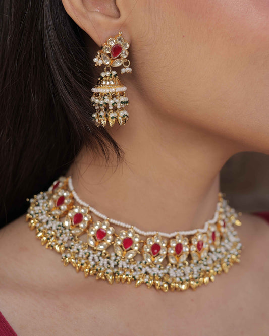 White Color Gold Plated Jadau Kundan Necklace Set - SET105W
