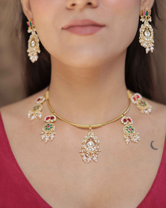 Rajwada Jadau Choker Necklace Set - SET104MC