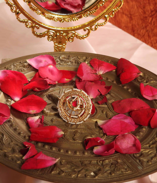 Pink Color Gold Plated Jadau Kundan Ring- R101P