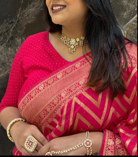 Pink Color Gold Plated Jadau Kundan Passa- P101P